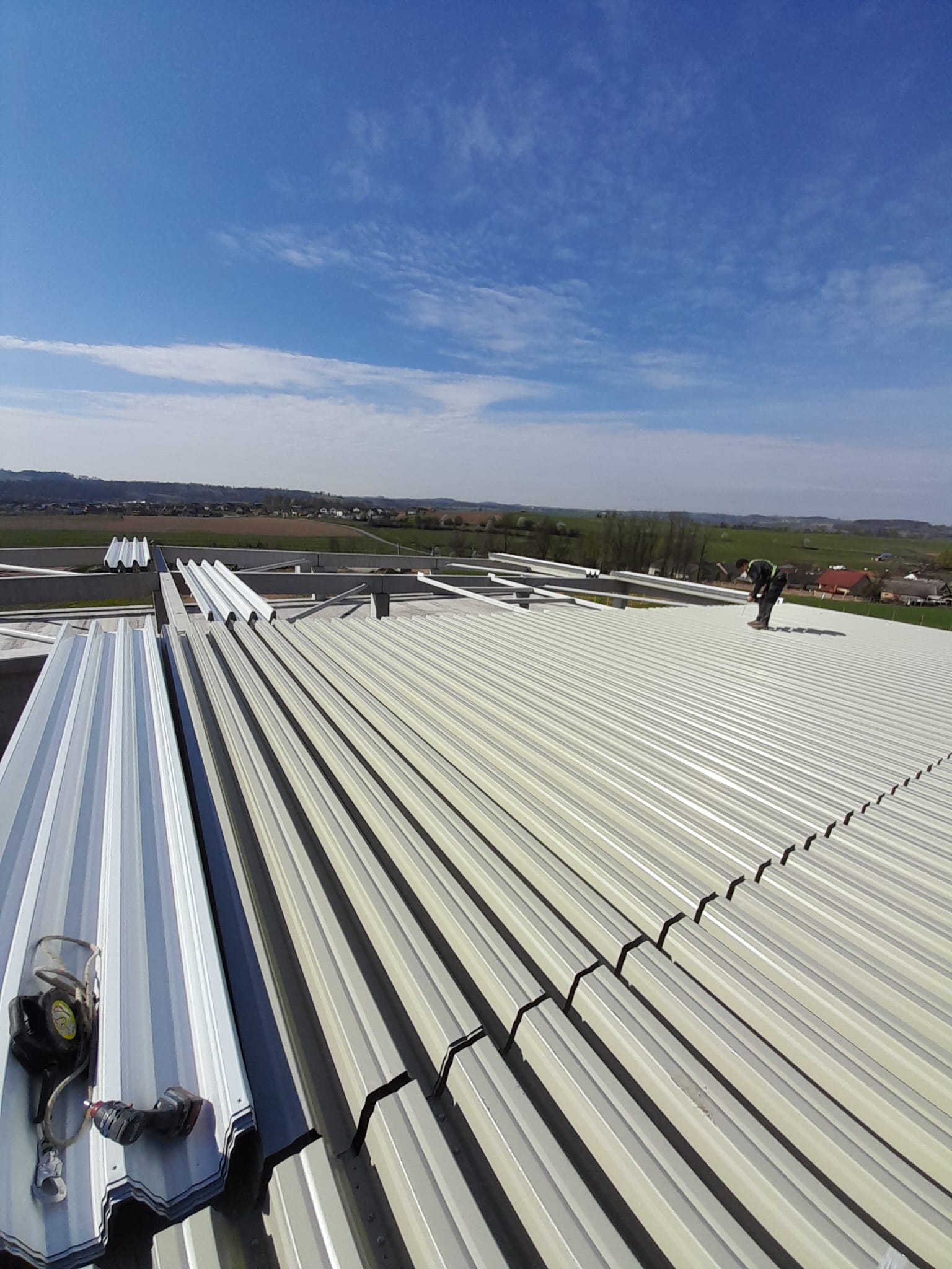 Montáž trapézových plechů a sendvičových panelů ve Velké Losenici