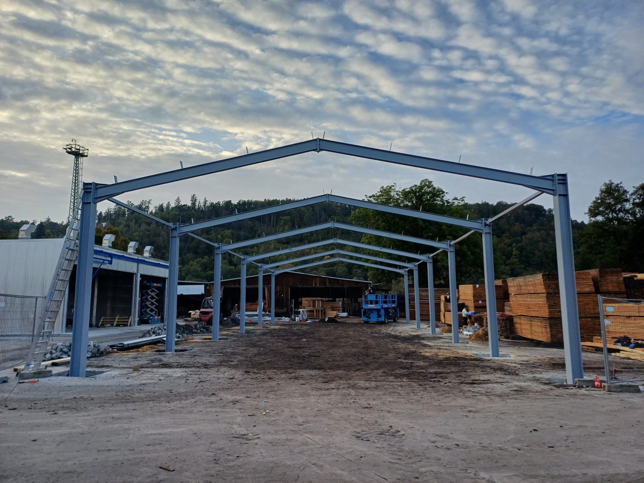 Montáž ocelové haly – Brno-Komárov